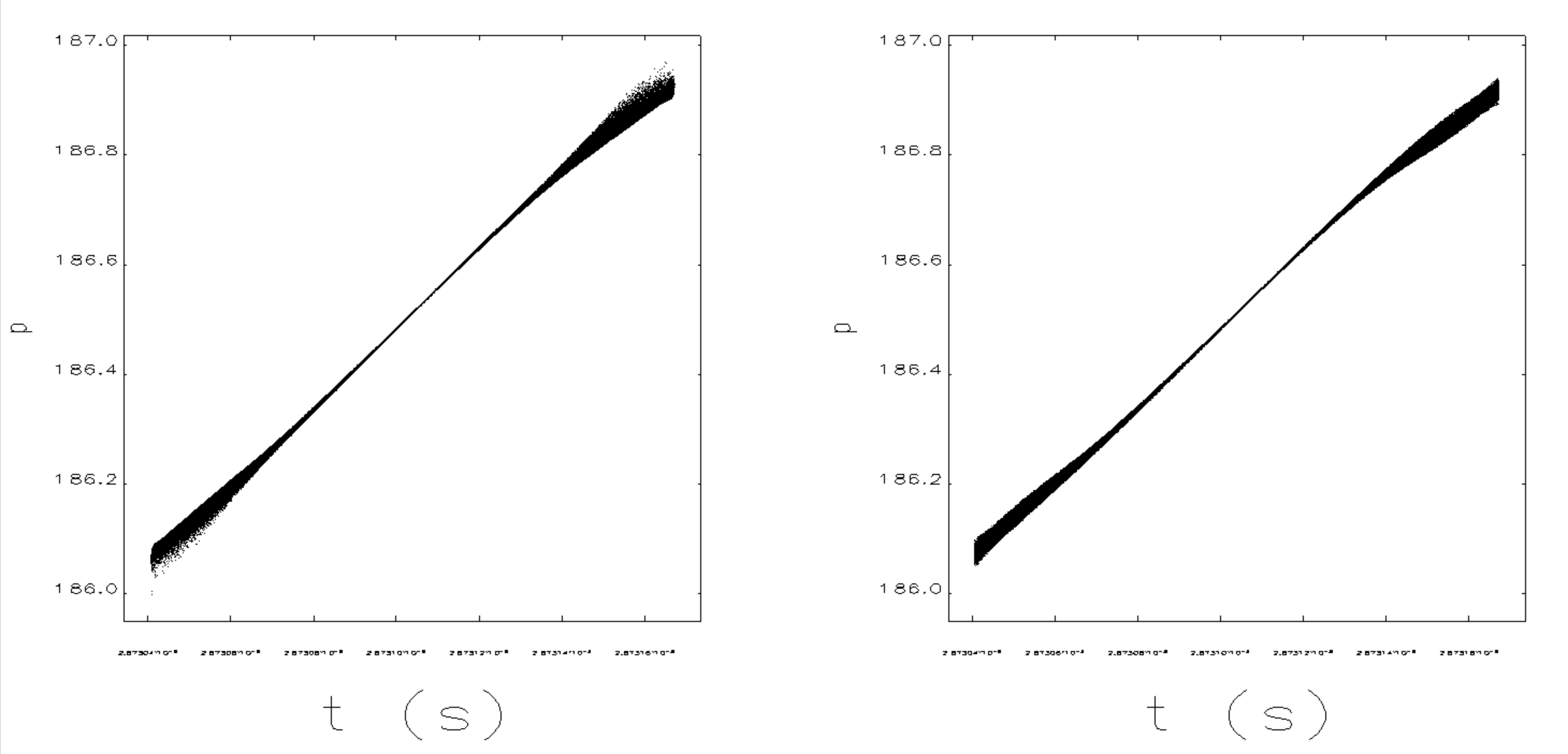sddsplot -graph=dot -sep=1 -same -layout=2,2 -col=t,p P200k_e1220.sdds P200k_e1220.sddsx2