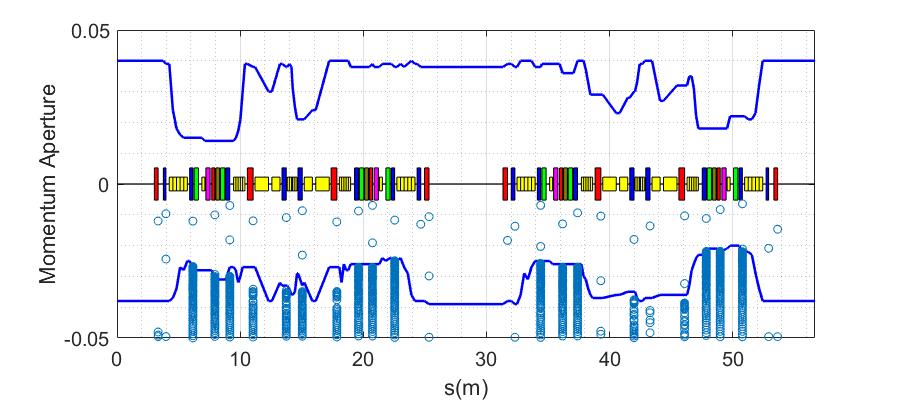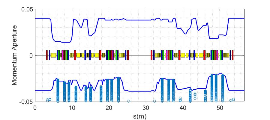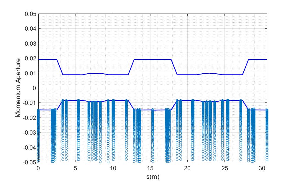 the scatter plot was the Dynamic Aperture found by particle tracking
