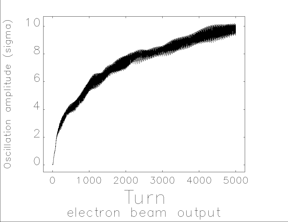 I plot the instability amplitude as per the script you have mentioned in previous reply. The instablity amplitude increases beyond 1 or 2 times beam size, which is not following the theoritical prediction perhaps. Please find the figure of instability amplitude vs turn which shows it increases upto 10 times beam size in vertical plane. Can you please clarify it . Also please answer my previous query on ion denisty plot.