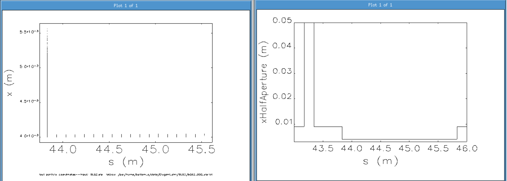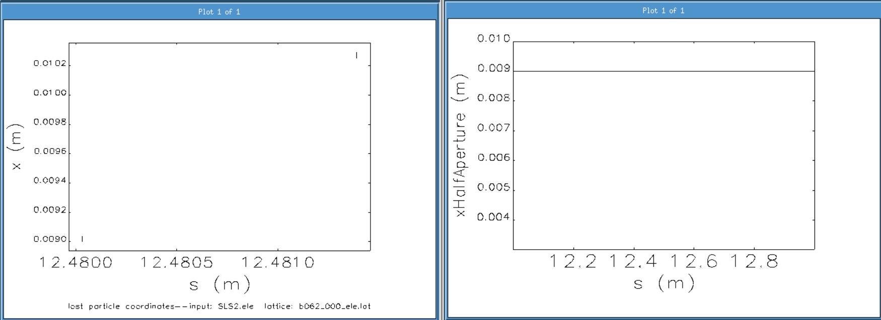 I followed what I read in the manual, and I generate the kind of losses (from the %.loss file) shown in this entry. I report also the xHalfAperture in the same area. They make sense when I use ALTER_ELEMENT applied to the beam at the injection to add an offset or an angle, and I do the tracking, but I see some discretization in s. How can I reduce it?