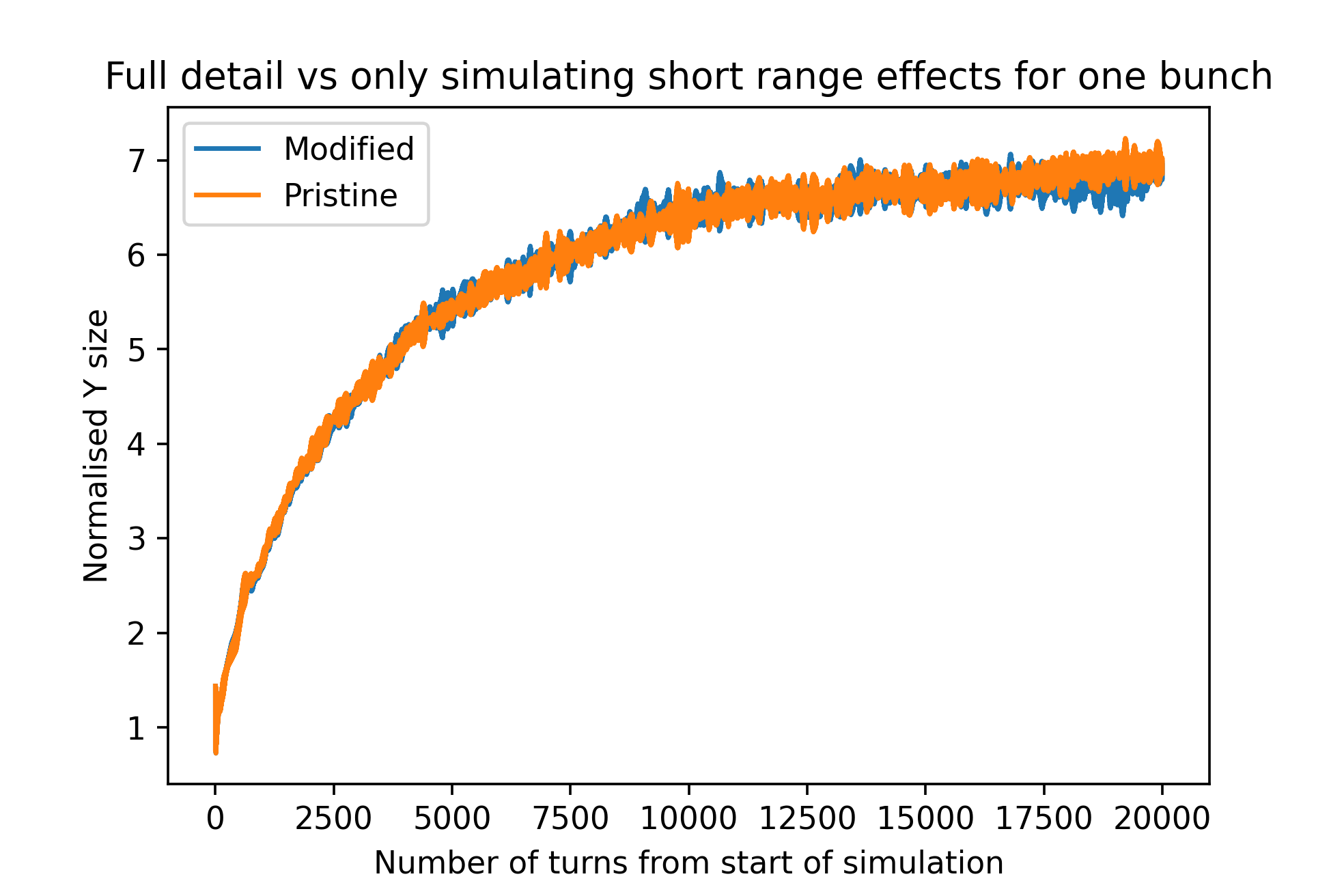 It's nothing complicated, I literally just disable the processing of the short range impedance for any bunch that I'm not interested in via an IF statement. For 20k turns, ILMatrix, 1 thread, with 1250*899 particles I get 100:05:19 vs 08:53:37. Obviously it cannot be identical to the normal simulation, but as an example here are two meaningful quantities I care for in my work: