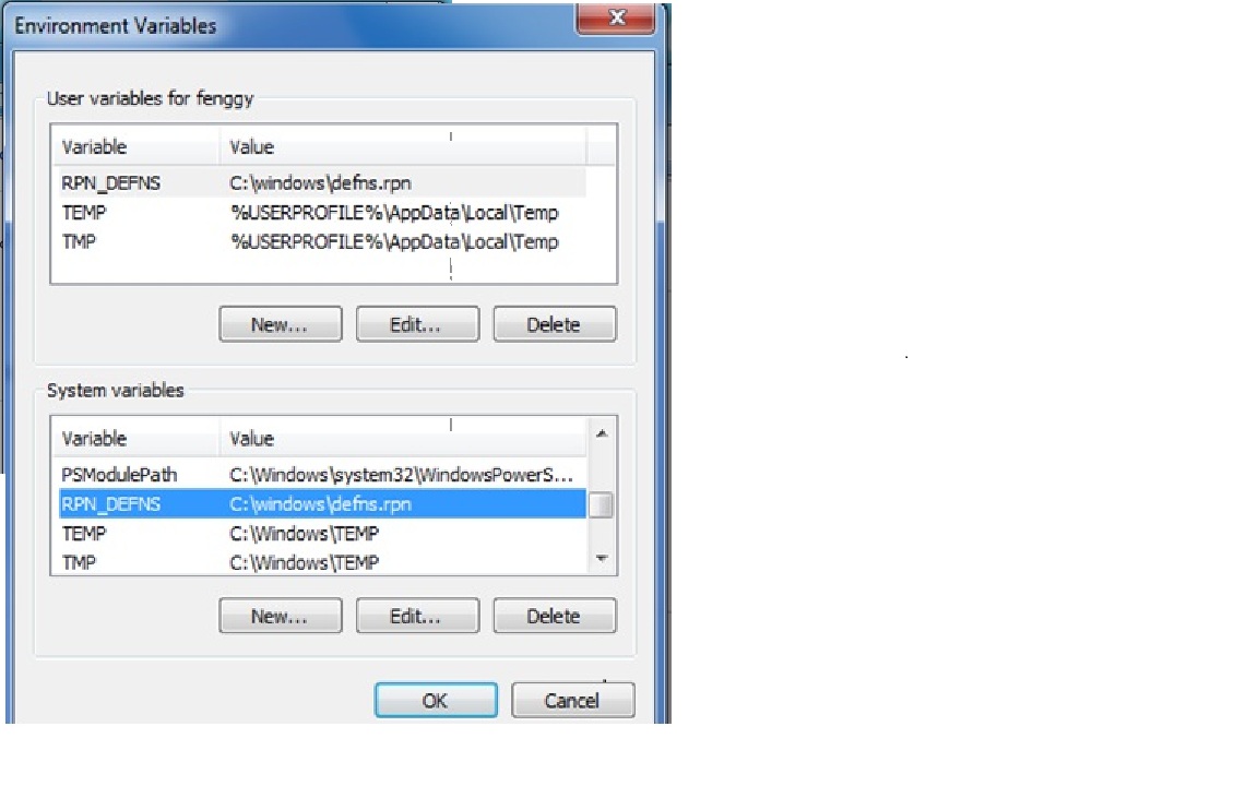 $ export RPN_DEFNS=c:\\windows\\defns.rpn
