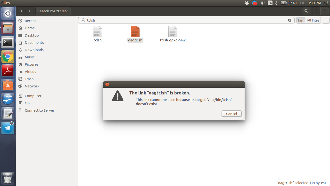 If you setup a symbolic link on Linux so that oagtclsh points to /usr/bin/tclsh then you will have to remove that.