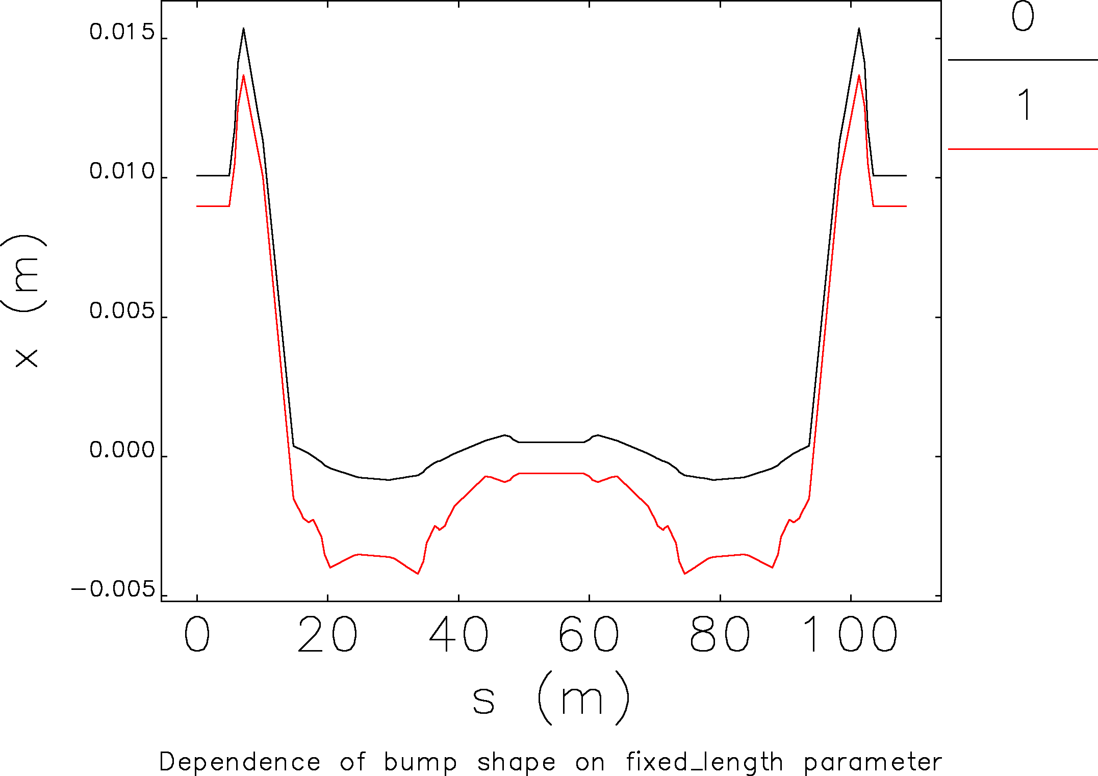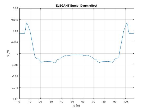 I have a problem and It will be great if you can help me. I want to put 4 local bumps in 2 dipole for hitting a defined target, so (x) should be offset during these bumps and then become zero. I put the value for these bumps in lattice and track particle in ELEGANT and MAD. You can see the results below: Bumps in MAD act locally but in ELEGANT doesn't act locally so I decided to use ejectionOptimization example for defining the values of bumps in the ELEGANT, when I put bumps in the first of lattice the values of bumps become correct and bumps act locally,