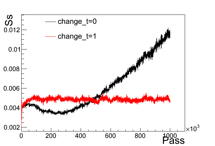 yes you are absolutly right! I misinterpreted the meaning of s. St is the quantity I wanted and it gives comparable results for both change_t=0 and 1. Thank you for your help!