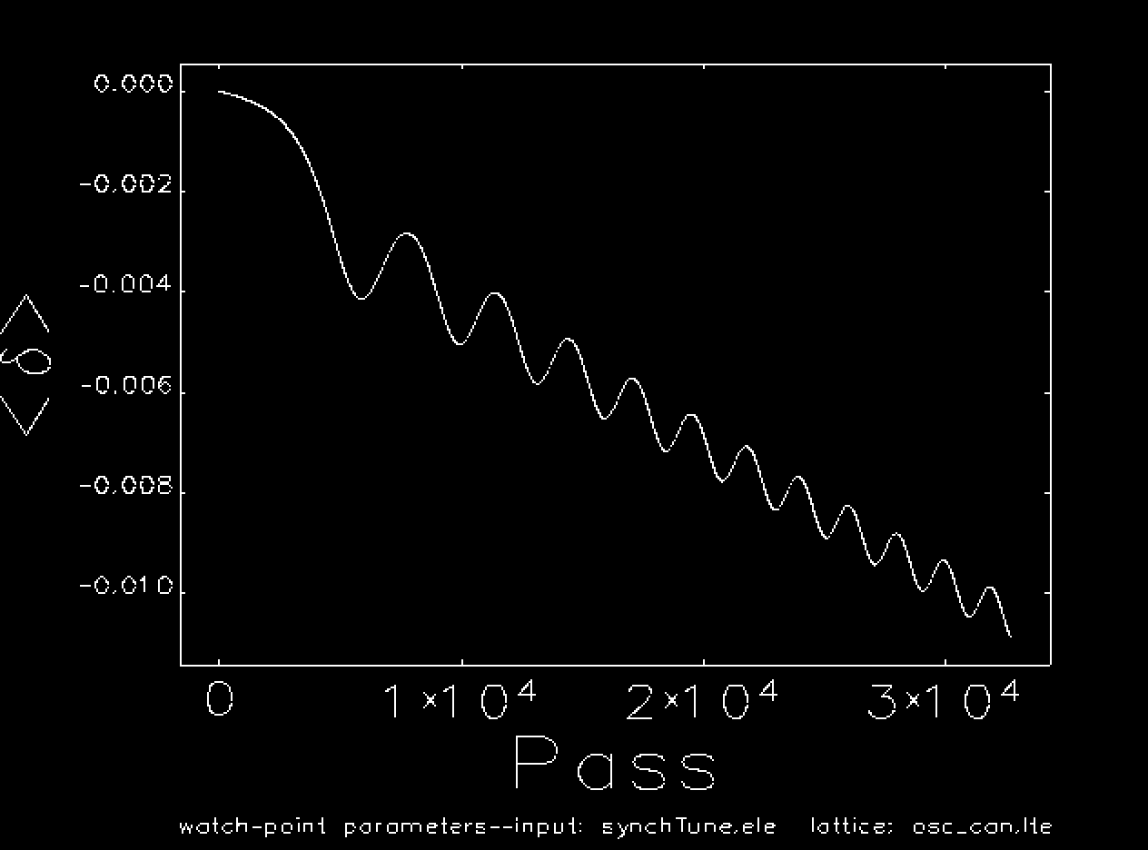 Second (and I suppose this is related), I have adapted the synchrotron-tune example to run on my lattice (see syncTune.ele) and even for the simple case of a lattice described with matrices I do not see the synchrotron oscillations.