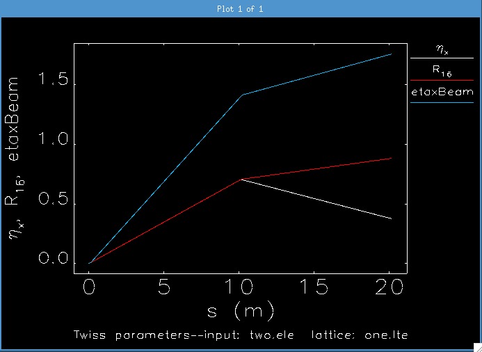 May I ask you one question you mentioned in the former reply of "In an isochronous system, they'll be related by the ratio of the initial to final momentum. However, if there is momentum-dependent variation in path length from a bunch compressor followed by additional off-crest acceleration, this isn't assured." I checked with (chicane1, linac1-off-crest, chicane2, linac2-off-crest, dogleg), the final etaxBeam actually will not be equal to the simple ratio with R16. Because in my current work, I need to leak out the dispersion from the start to suppress the MBI, so there is dispersion all along the whole line, and I want to calculate the dispersion at the entrance of dogleg. How could I use transfer matrix to get it instead of by tracking particles ? Is there some references related this question ? Sorry for bothering you so much.