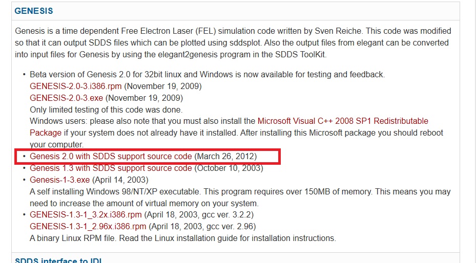There were multiple problems with GENESIS built against the current SDDS source code tree. I think I fixed all the problems. I have put up a new link to the source code and updated the date. Let me know if this works for you.