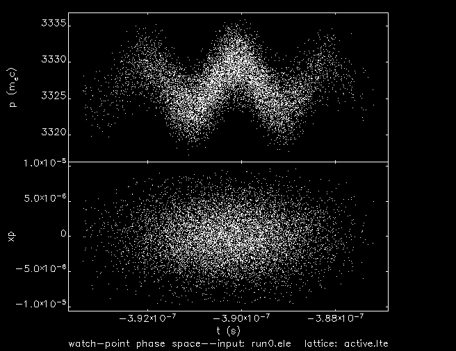 What I exactly want to try is that a phase-dependent kick by the cavity since the transverse electric field of a TM01 cavity depends not only on a beam offset but also on the cavity phase. But there is no clear correlation between t and xp when a tracking simulation has been performed with a long bunch.